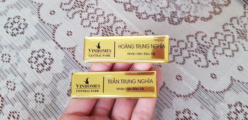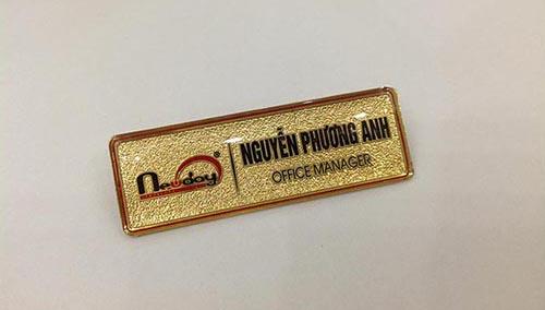 IN ẤN HOÀNG LONG Chuyên sản xuất bảng tên nhân viên, bảng tên nhân viên cài áo trên nhiều chất liệu như: Bảng tên đồng, bảng tên inox, bảng tên hợp kim, bảng tên nhựa... Bảng tên nhân viên tại IN ẤN HOÀNG LONG được gia công tỉ mỉ các góc cạnh làm bảng tên có độ thẩm mỹ cao hơn đi kèm theo đó là quy trình kiểm tra chất lượng nghiêm ngặt từ khâu sản xuất đến đóng gói giúp sản phẩm của IN ẤN HOÀNG LONG đạt chất lượng cao hơn các đơn vị cùng ngành.