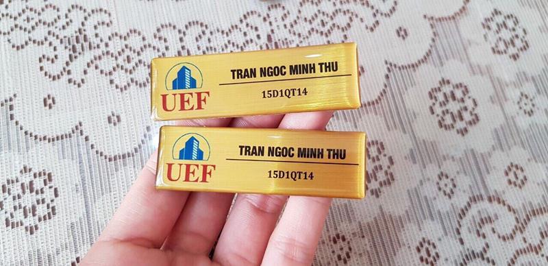 + Bảng tên nhân viên đồng hoặc inox in UV